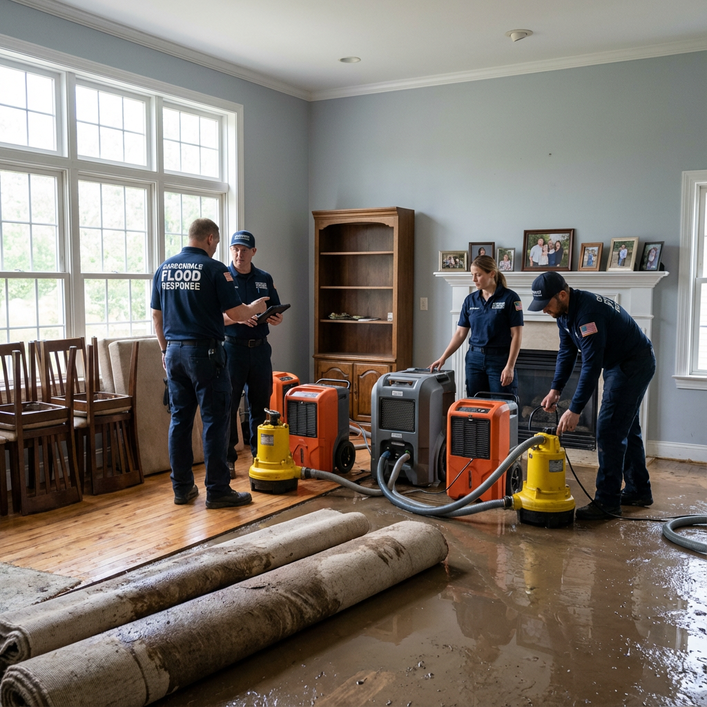 - Moisture mapping and targeted drying with air movers and dehumidifiers