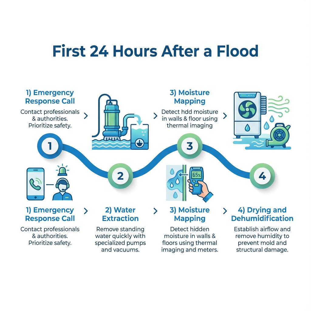 Start extraction as soon as possible, ideally within the first 24 hours. Fast action reduces saturation and lowers the risk of mold and long-term damage.